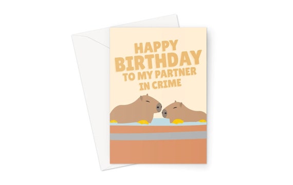 Happy Birthday to My Partner in Crime A5 Greeting Card Capybara